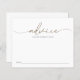O cartão de atividade do chá de fraldas apresenta um roteiro de caligrafia dourado moderno. O cartão de "conselho" aos hóspedes que compartilhem conselhos para que os pais se preparem para o bebê.