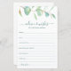 Estas lindas, botânicas, escritas à mão, folhas de Advice & Wish com aquarela eucalipto no topo são perfeitas para ter chá de panela, janto de ensaio ou convidados de casamento preenchidos para o casal feliz. As pessoas vão adorar ter as ordens - tornam tão fácil deixar palavras amáveis de conselhos e de bons desejos. Eles ficarão tesos por anos.