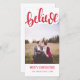 Mão corajosa bonita o roteiro rotulado acredita adiciona um sentimento bonito a este cartão de Natal da foto