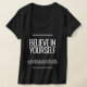 Mantenha-se capacitado com esta camiseta básica de mulheres na moda negras, apresentando uma ousada mensagem "Acredite em si mesma" e uma citação inspiradora sobre autoconfiança. Feita para conforto e motivação, a design incrível encoraja confiança e resiliência pessoal aonde quer que você vá. Perfeito para visto casual, doação ou qualquer pessoa que procure um lembrete diário da força interior e da positividade.