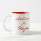 Obtenha no espírito do feriado com esta caneca bonita da lembrança que nos lembra sempre "acredita na esperança." Este é um presente perfeito para o senhor mesmo ou amado quem aprecia o café, o chá, ou o chocolate quente!!