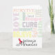 O cartão branco com a colagem elegante da palavra, incluindo a esperança, amor, acredita, sobrevive e cura-se. A mensagem "acredita nos milagre" aparece na parte inferior. Inclui uma fita vermelha para o curso e a consciência do AIDS. Um presente da inspiração aos sobreviventes e aos amigos com curso ou AIDS.