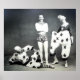 Poster mostrando um acrobatas e alguns palhaços por volta de 1900