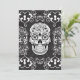 Açúcar Decorativo Caveira Negra Design de Grunge Gótico Branco Preto, com crânio, rosas e corações decorativos. O fundo é uma cor damasco sutil. Perfeito para o Dia dos Mortos ou das Bruxas.