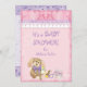 Esse filhote adorável sorri para seus convidados e os convida a compartilhar seu dia especial para seu chá de fraldas. O trabalho de arte é de cor aquosa manual e contém um filhote recheado com arco roxo no pescoço, um pacificador roxo e botas roseáveis cor-de-rosa. O fundo é um rosa suave com espirais brancas pintadas à mão, um local com pontos de cruz retos pintados à mão e uma borda de rick sobre uma espiral contemporânea no topo. O verso tem um fundo roxo e lavanda com pontos e círculos. Por cima desta borda está uma garrafa de bebê, um binkie e o par de calçados de rosa bud. Há uma grande variedade de produtos projetados para coordenar um conjunto completo de bebês. VOCÊ TAMBÉM PODERIA GOSTAR DE: