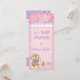 Esse filhote adorável sorri para seus convidados e os convida a compartilhar seu dia especial para seu chá de fraldas. O trabalho de arte é de cor aquosa manual e contém um filhote recheado com arco roxo no pescoço, um pacificador roxo e botas roseáveis cor-de-rosa. O fundo é um rosa suave com espirais brancas pintadas à mão, um local com pontos de cruz retos pintados à mão e uma borda de rick sobre uma espiral contemporânea no topo. O verso tem um fundo roxo e lavanda com pontos e círculos. Por cima desta borda está uma garrafa de bebê, um binkie e o par de calçados de rosa bud. Há uma grande variedade de produtos projetados para coordenar um conjunto completo de bebês. VOCÊ TAMBÉM PODERIA GOSTAR DE: