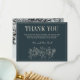 Um lindo cartões de agradecimentos com "Obrigado" e texto na frente, e uma foto da noiva e noiva no verso. A parte de texto pode ser digitada para enviar a cada convidado ou removida para gravar uma nota para cada convidado. Coordena-se perfeitamente com a coleção Adelaide Curated Colors.