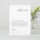 Esta carta de boas-vindas de casamento e cronograma apresenta uma fonte manuscrita ousada e um design minimalista moderno. A simples combinação de cores preto e branco torna-a um complemento perfeito para qualquer evento. Edite facilmente a *maioria* das palavras neste cronograma. Clique em 'clique para personalizar ainda mais' na seção de personalização para abrir o editor completo. Para adicionar novos ícones, visite https://www.svgrepo.com/ e procure o ícone que você precisa. Baixe como .svg e arraste e solte no editor do Zazzle. Altere a cor do ícone no lado direito do editor.