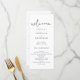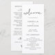 Este programa de casamento apresenta uma fonte bem escondido e design moderna minimalista. A combinação simples de cores preto e branco faz dela a adição perfeita a qualquer evento. Edite facilmente o texto *maioria* para suas necessidades e edite todas as cores para corresponder às cores do seu evento.