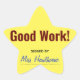 Um adesivo amarelo brilhante em forma de estrela para um aluno da escola dizer bem feito. Uma recompensa do professor. Assine com seu próprio nome.