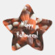 O adesivo temático do Halloween com uma foto próxima do milho doce e os desejos do Feliz Dia das Bruxas.