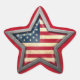 Este design único apresenta a bandeira de A dentro dos Estados Unidos de uma estrela de cinco pontos. A estrela é cercada por uma espessa moldura que tem texturas e cores metálicas que lhe dá a aparência de ser feita de aço sólido. Destaques fortes e sombras dão à bandeira americana um efeito tridimensional. A bandeira também está coberta por uma textura áspera que lhe dá um aspecto vestido e envelhecido. Raios de luz colorida se esticam atrás da estrela em todas as direções. Este padrão espantoso é uma maneira perfeita de mostrar o seu patriotismo.