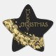 Os autocolantes pretos de 1-1/2" em forma de estrela apresentam uma sequência de estrelas e pontos dourados cintilantes e as palavras "MERRY CHRISTMAS".