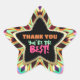 Uma estrela colorida de cinco pontos com área preta e dourada para o seu texto personalizado. Um adesivo de encorajamento de estrela do Super arco-íris para adicionar aos seus Cartões, envelopes