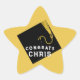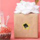 Adesivos exclusivos de congratulações de formatura, etiquetas de favor de festa e selos de envelope de graduado com clássico chapéu de formatura preto e dourado em fundo dourado. Edite o texto para adicionar o nome do graduado ou personalizar de outra forma.