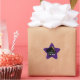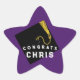 Adesivos exclusivos de congratulações para graduado, etiquetas de favor de festa e selos de envelope de graduado com o clássico chapéu de formatura preto e dourado em fundo roxo. Edite o texto para adicionar o nome do graduado ou personalizar de outra forma.