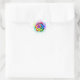 Rosa grande e florescente com pétalas arco-íris sobre fundo branco, pintadas com pedaços de tinta colorida e brilhante. 3d