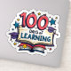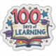 Celebre 100 dias de aprendizado com este design vibrante adesivo com um texto colorido de "100 dias de aprendizado", livro aberto, estrelas e bonés de formatura. Perfeito para professores, estudantes e eventos escolares marcarem este marco especial.