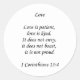 Designs de Judith Heath ~ Christian Faith Art ~ 1 Corinthians 13:4 Love is Patient Um texto inspiracional apenas design cristão sobre fundo branco. Texto das Escrituras: 1 Corintianos 13:4. "Amor. Amor é paciente, amor é gentil. Não inveja, não se vangloria, não se orgulha".