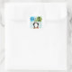 O primeiro design de pinguim de aniversário do bebê com pinguim vestindo um chapéu de festa, balões e bolinhas de azul e verde, e texto que diz que eu tenho 1.