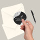 Deixem seus convidados com um obrigado elegante... que vocês enviam uma mensagem nesses adesivos favoritos. Feita com aparas brancas e falsas nos lados superior esquerdo e inferior direito. Fundo preto abaixo com texto personalizável de cinza clara. Bandas de anel de noivado em prata acima do texto.