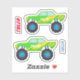 Dois legal caminhões verdes e amarelos monstros com nome personalizado em branco e dois nomes extras.