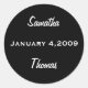 Nomes e Data podem ser alterados por você quando você personalizar. A cor de fundo do selo do adesivo preto e branco também pode ser personalizada por você ao solicitar clique em personalizar para alterar qualquer informação e cores perfeitas para envelopes e selos