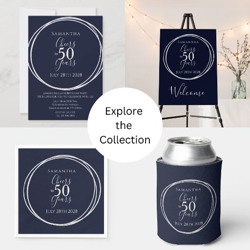 50th Birthday Navy Silver Cheers to 50 Years PartyCriado por Only The Moon