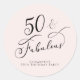 Um bonito adesivo rosa pálido para seus cinquenta convites de aniversário, correspondência e favoritos para festas. Este elegante e chic design apresenta "50 & Fabuloso" escrito em um roteiro de caligrafia. Personalize com seu nome.