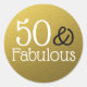 Vírgula dourada 50º aniversário de adesivos de celabração. O na moda 50 e Fabuloso impressão de tipografia em um fundo dourado brilha dá um olhar estiloso e chique aos adesivos da festa.