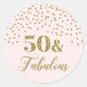 50 e fabulosos adesivos de etiquetas favoritos à festa de aniversário em cor-de-rosa claro e pincelado com confete de brilho dourado.