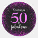 "50 e fabuloso." Orgulha-te, regozija-te e lança-te em 50 com estilo! Este chic, brincalhão, personalizado, cintilante e quente confete rosa em um adesivo preto de fundo, ajudará a fazer dela uma festa para se lembrar. Estão igualmente disponíveis convites, envelopes, etiquetas, guardanapos de papel, placas de papel, canecas e outros artigos. Faz um excelente extra às festividades! Basta digitar o nome da aniversariante (e mudar de idade, se desejado) e você pode personalizar facilmente este adesivo redondo. Por favor, me mande mensagens com quaisquer perguntas ou solicitações.