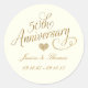 Celebrate a half-century of love with these elegant, personalized anniversary stickers. Featuring a shimmering gold-effect script and a delicate rose-filled heart, these round stickers are the perfect finishing touch for your 50th-anniversary celebration. The design displays "50th Anniversary" in a sophisticated font, beautifully balanced with the couple's names and the milestone dates below. These versatile stickers are ideal for sealing plastic-wrapped cookies, candy bags, or wedding anniversary invitations. Easy to customize—simply add the couple’s names and dates to create a timeless keepsake for your guests.
