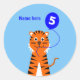 Adesivo 5 tigre de aniversário adicione nome azul