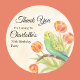Thank you for coming watercolor party sticker featuring a delicate hand painted parakeet perched among soft blooming tulips on a warm, peaceful background. Designed with gentle detail and calming color, this elegant nature inspired sticker adds a thoughtful finishing touch to party favors, gift bags, and thank you notes.