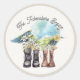 Este adesivo "A Aventura Começa" casais/casamento/chá de panela/noivado apresenta dois pares de botas de caminhada/calçados de caminhada com flores em frente a uma cordilheira em aquarela. Personalize-o para as suas necessidades. Você pode encontrar produtos correspondentes na minha loja.