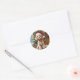 An adorable Christmas sticker with a festive poodle sitting in front of the fireplace on a cold winter day. A Christmas tree decorated and a festive background. Adorable to seal Christmas cards with.