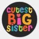 Esta design corajosa e colorida é uma maneira fofa de mostrar quem é a irmã mais velha da sua família nos feriados, aniversários e comemorações familiares. O texto diz a IRMÃ GRANDE CUTEST com pequenos corações. Em bebês, crianças e T-shirts adultas, autocolantes, cartões de saudação, sacos de tote e muito mais! Correspondente à design da Irmã Pequena também disponível original PinkInkArt!