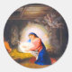 Stickers com a pintura religiosa de Vladimir Borovikovsky A Natividade do Cristo (1757-1825). Mãe Mary segura o Jesus recém-nascido em sua mangueira com um cheio estável de animais, anjos e pastores olhando em frente. Um presente significativo para o Natal e a celebração religiosa.