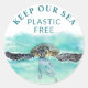 A mensagem de conservação das tartarugas marinhas e oceânicas MANTÉM O NOSSO PLÁSTICO MARÍTIMO LIVRE com uma tartaruga marinha a nado enquanto segurava um saco plástico. Use para observar o Dia Mundial dos Oceanos e o Dia da Terra, assim como para espalhar a mensagem todos os dias. Turquoise aqua chalé. Entre em contato com o designer por meio do Zazzle Chat ou makeitaboutyoustore@gmail.com se você quiser que este design seja modificado ou outro produto.