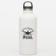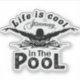 Silhueta branca dinâmica de um nadador com a mensagem 'A vida é legal na Piscina', perfeita para entusiastas da piscina e nadadores de verão.