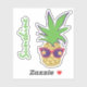 Este conjunto de adesivos contornado apresenta uma imagem gráfica divertida de um abacaxi vestindo óculos escuros do estilo gato retrô em vermelho. Há um adesivo separado com texto modelo fácil de personalizar.