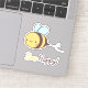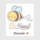 Um adesivo com um desenho simpático de uma pequena abelha feliz e as palavras trocadilho “Bee Happy!” Fique feliz e positivo!