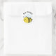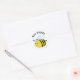 Abeja Feliz abelha. Adesivos fofos e excêntricos com uma abelha cartoon preta e amarela. Tem um grande corpo oval amarelo com três listras verticais pretas. Seu ferrão é preto e tem asas transparentes azul claro. Dois tentáculos pretos na cabeça e um rosto feliz fofo. O fundo é branco, mas pode ser alterado clicando em personalizar e selecionando a cor de fundo de sua escolha.