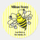 Uma linda abelha de desenho fica no centro deste adesivo divertido. O fundo é listras brancas e amarelas. Este adesivo ajustado perfeitamente em cima de um pote.
