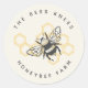 Vintage Bee Logo Rustic Honeybee Beekeeper Classic Round Sticker Esta design de tendência apresenta uma abelha de mel preta contra um fundo amarelo de mel. O perfeito design apiário para um negócio de apicultor.