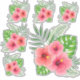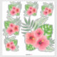 Flores cor-de-rosa hibiscus com uma variedade de folhagem tropical. Os tamanhos de decalques de vinil podem ser usados para uma variedade de coisas, desde laptop até janelas de carros