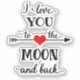 Eu te amo na lua e de volta em letras mestiças e letras maiúsculas de serifa em preto com um coração vermelho acento com uma seta preta. Use a modelo para mudar VOCÊ para um nome pessoal.