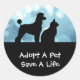 Adote um adesivo Pet com silhueta de cão e gato, fundo azul legal e texto que você pode personalizar com qualquer mensagem. Perfeito como adesivos ou etiquetas para um salvamento de animais de companhia, um centro de adoção de animais de companhia, abrigo de animais ou libra de cão.