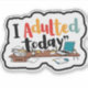 Celebre suas conquistas, não importa quão pequenas, com nosso adesivo "Eu Adultei Hoje"! Este adesivo lúgubre e humorístico é perfeito para aqueles dias em que você enfrenta suas responsabilidades e se sente orgulhoso de suas habilidades adulterantes. Quer você tenha completado suas tarefas diárias, votado, ou simplesmente tenha conseguido sair da cama a tempo, este adesivo é uma maneira divertida de recompensar a si mesmo e compartilhar suas vitórias adulterantes com outros. Feito de materiais de alta qualidade, é perfeito para decorar seu planejador, laptop, ou qualquer superfície que precise de um pouco de motivação e humor!